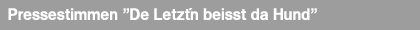 ...ihr gerade mal drei Wochen altes Programm "De Letzt´n beisst da Hund" scheint alle Rekorde zu brechen. Was die beiden da von sich geben, ist niemals abgedroschen. Bachmeier und Wählt haben auf ihrer Suche nach "Zündstoff" mitten ins Leben gegriffen. Und sie treffen den Nerv der Zeit.